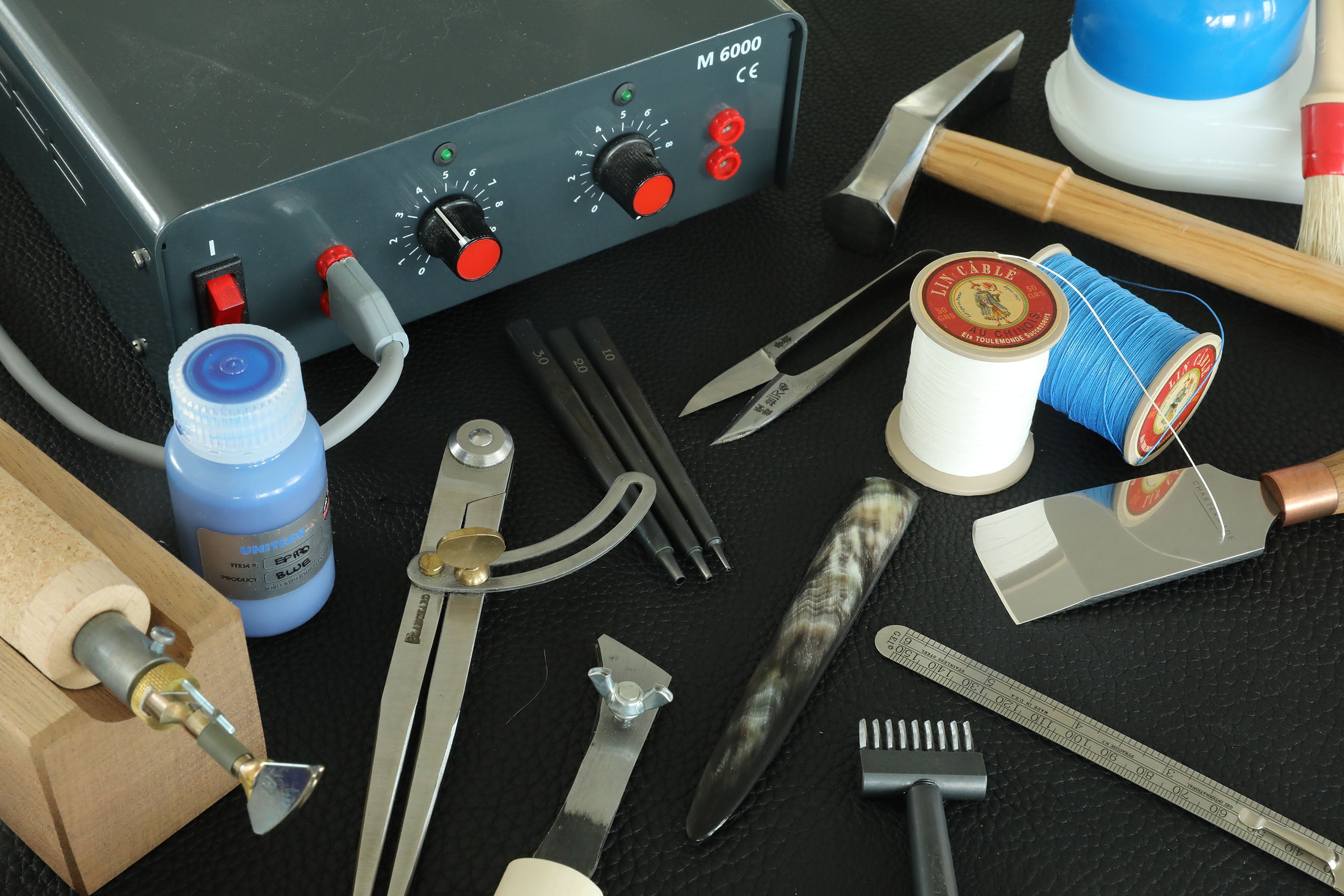 Bonds layers of leather together before stitching with an odorless glue that’s easy to clean if mistakes happen, and applied using simple tools that let you trace patterns or rough up surfaces for a stronger hold.