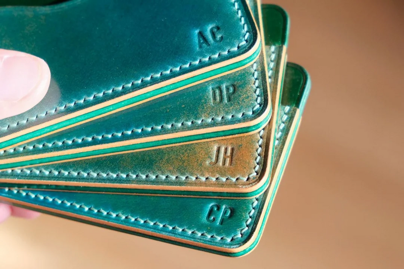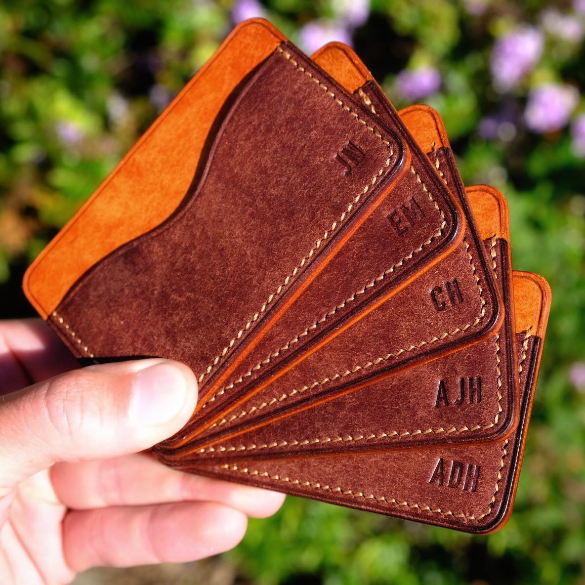 This set of cardholders. It was for a groom and his groomsmen, and each wallet had initials stamped for its intended owner. It was an honor to make these for such a special occasion and couldn’t be happier with how they came out.