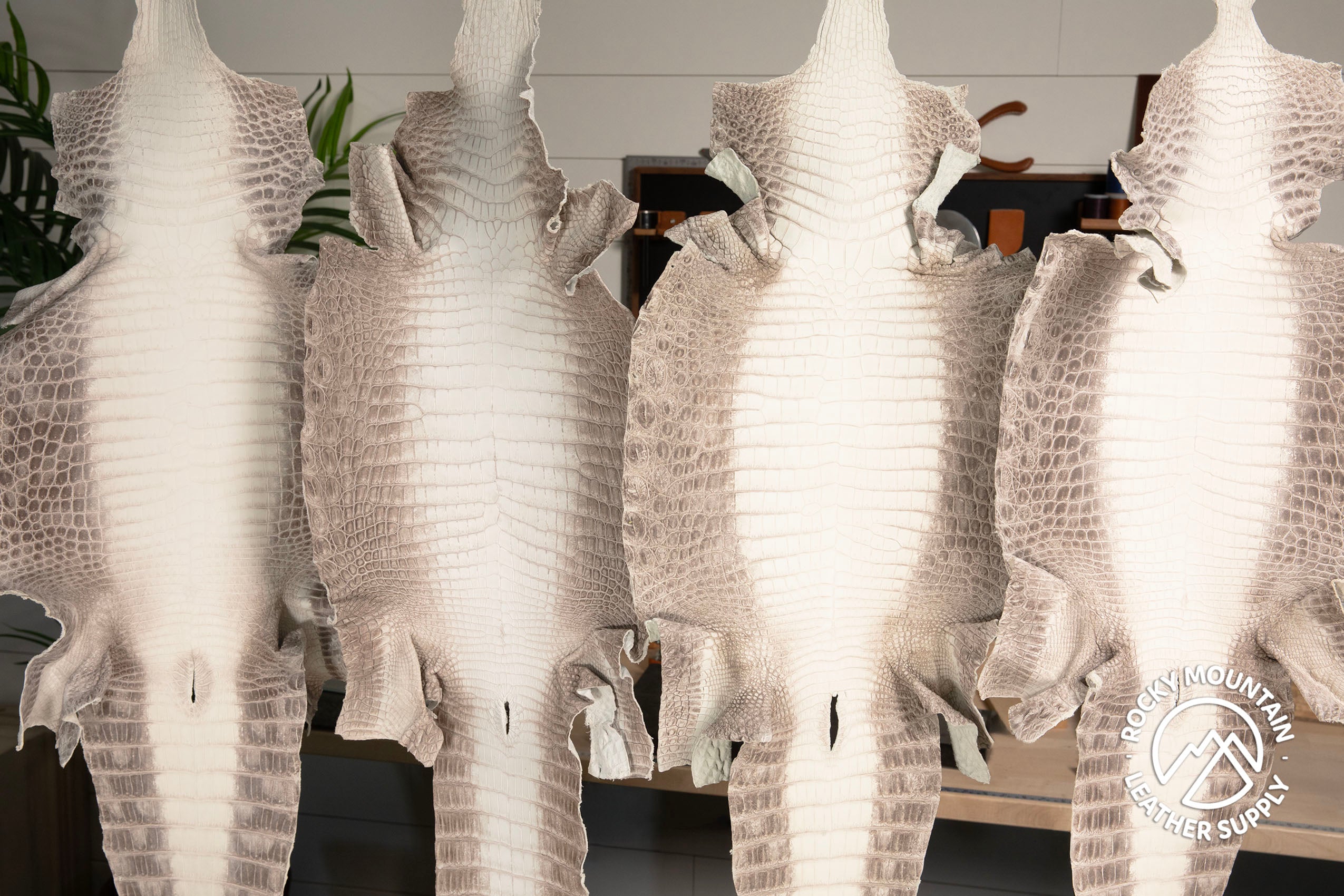 We are excited to have available a Matte Himalayan Crocodile Hides. This crocodile is a famous luxury exotic leather that has one of the most distinct looks due to its beautiful and unique scales and its all natural colored belly. It arguably the top of the luxury exotics leathers and has become one of the most sought for high end leather goods.