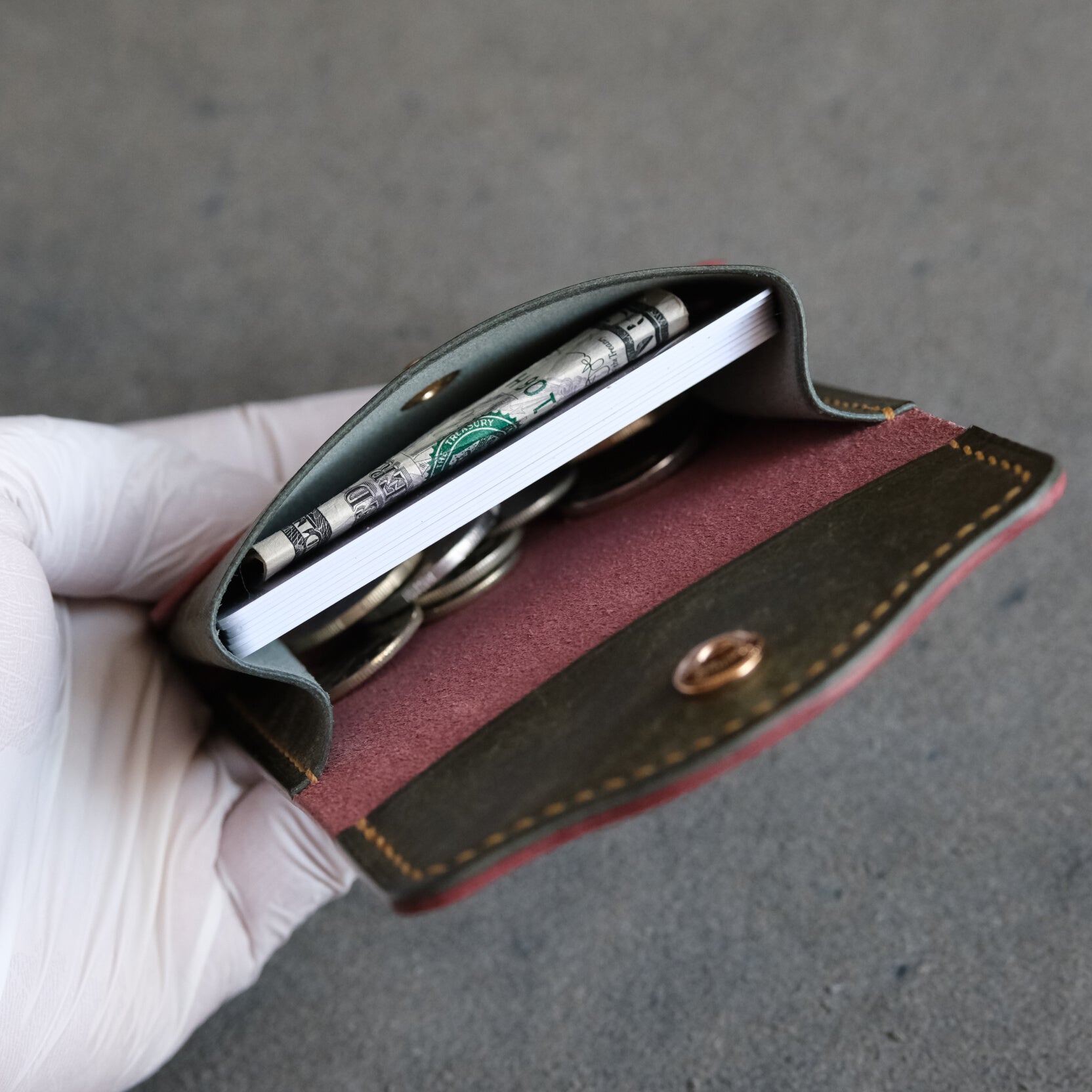 Capacity: up to 8 cards, folded cash and some coins