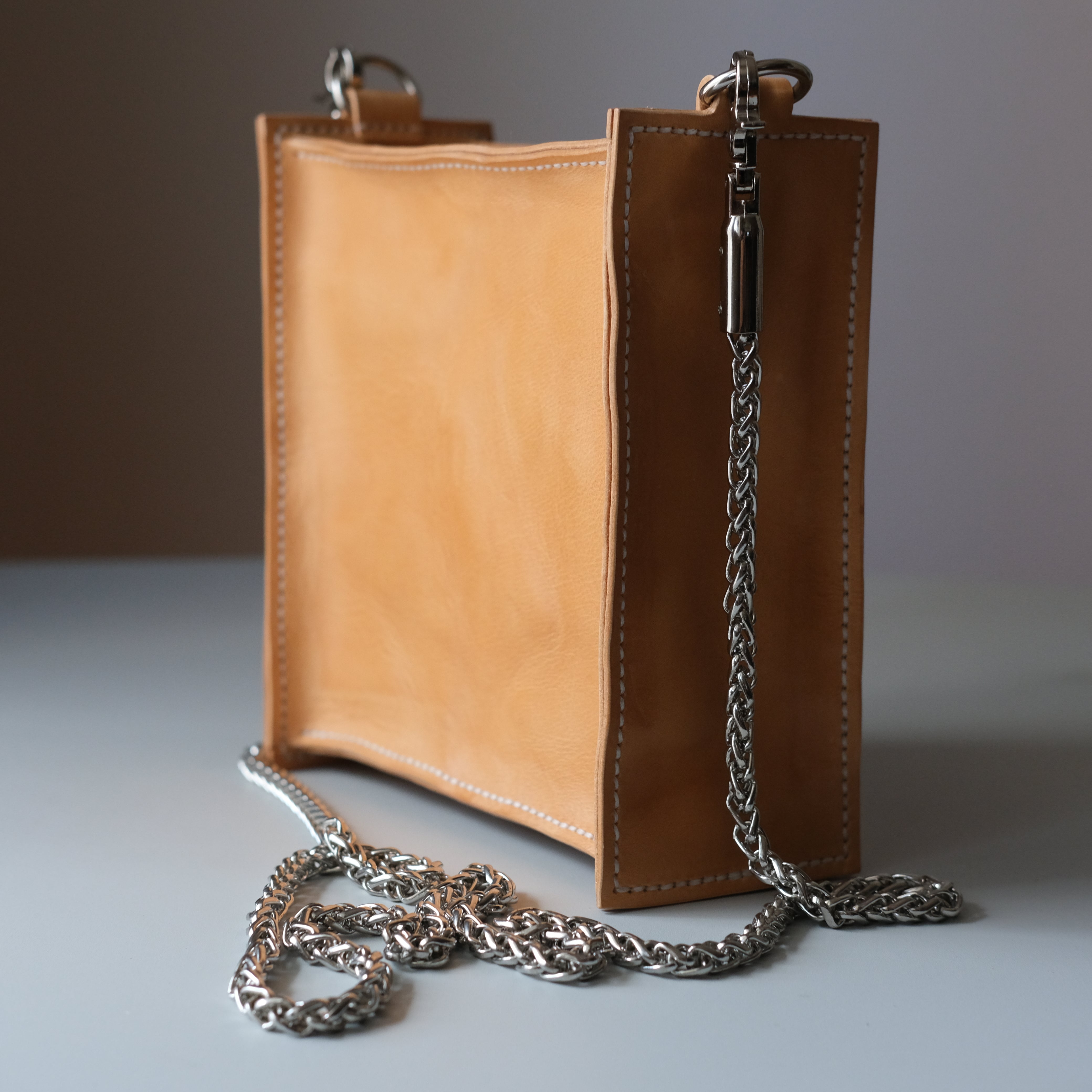 This is a PDF pattern to create a leather bag - The Barge Bag. The Barge Bag pattern utilizes the so called “three-piece single gusset” technique but switches what would usually be the front/back of the bag to be the gussets on both sides of the bag. This makes up for some unique looks and allows the D-ring loop to be part of the gusset panel itself. Gussets become a focal point of the bag and can be further highlighted by using a different colored leather for them. They can be also tooled and carved for the same purpose. The bag is designed for cross-body or on shoulder carry and comes with three strap options – two leather straps and a purse chain.