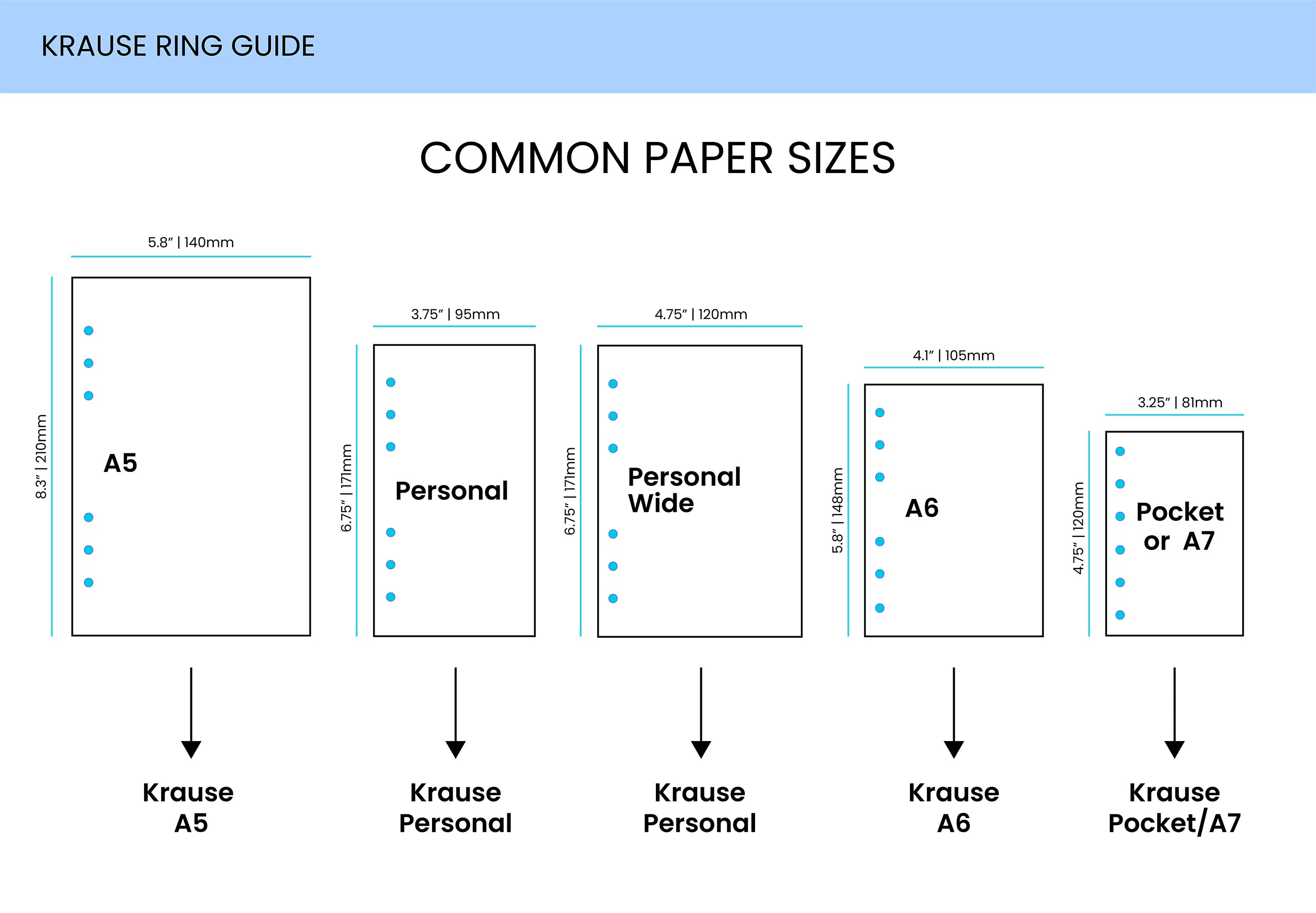 We offer these 6 ring in many sizes and also ring diameters to fit the right amount of paper for your product. Check our size and dimension chart for more specifics and information.